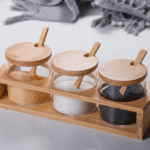 Ensemble de Bocaux en Verre avec Couvercles en Bambou – Élégance, Fraîcheur et Organisation au Naturel 🌿