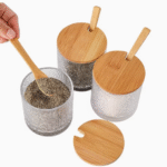 Chaque bocal est fabriqué en verre transparent de haute qualité, vous permettant d’identifier facilement le contenu. Son couvercle en bambou avec joint hermétique en silicone assure une fermeture étanche, protégeant vos produits de l’humidité, de l’air et des odeurs indésirables.
