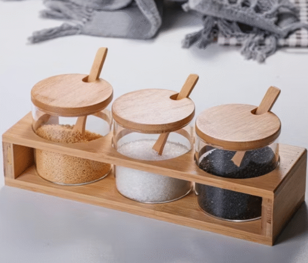 Ensemble de Bocaux en Verre avec Couvercles en Bambou – Élégance, Fraîcheur et Organisation au Naturel 🌿