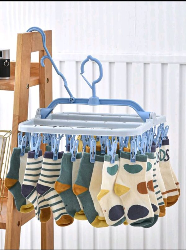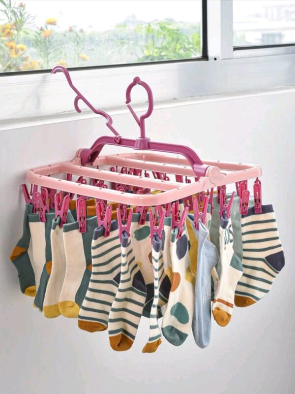 Clip Antidérapant : Le porte-chaussettes est équipé de clips antidérapants offrant une forte force de morsure. Vos vêtements, y compris les sous-vêtements et chaussettes, restent fermement accrochés sans risque de tomber, même par temps venteux.